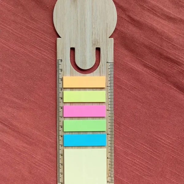 Découvrez cet original marque page avec post-it en bois de bambou pour une taille total de 21,5x6,5 cm.